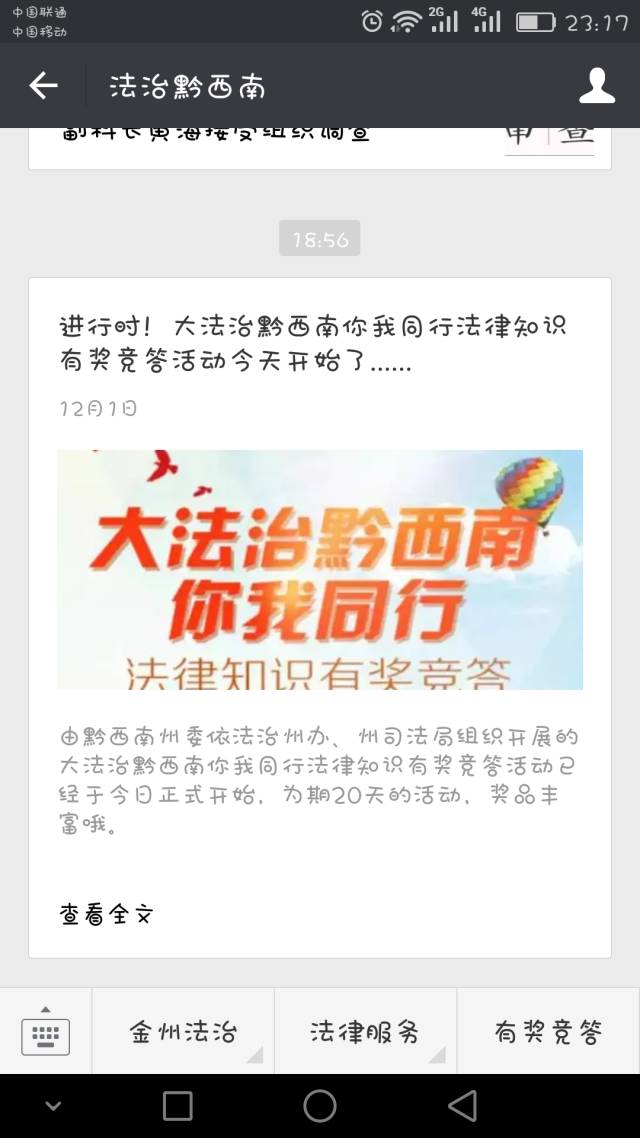 关注法治黔西南微信公众号后,点击右侧“有奖竞答”菜单参与活动