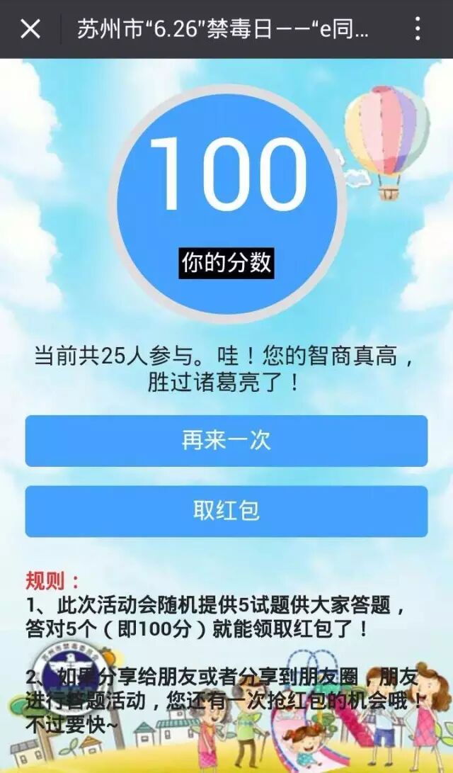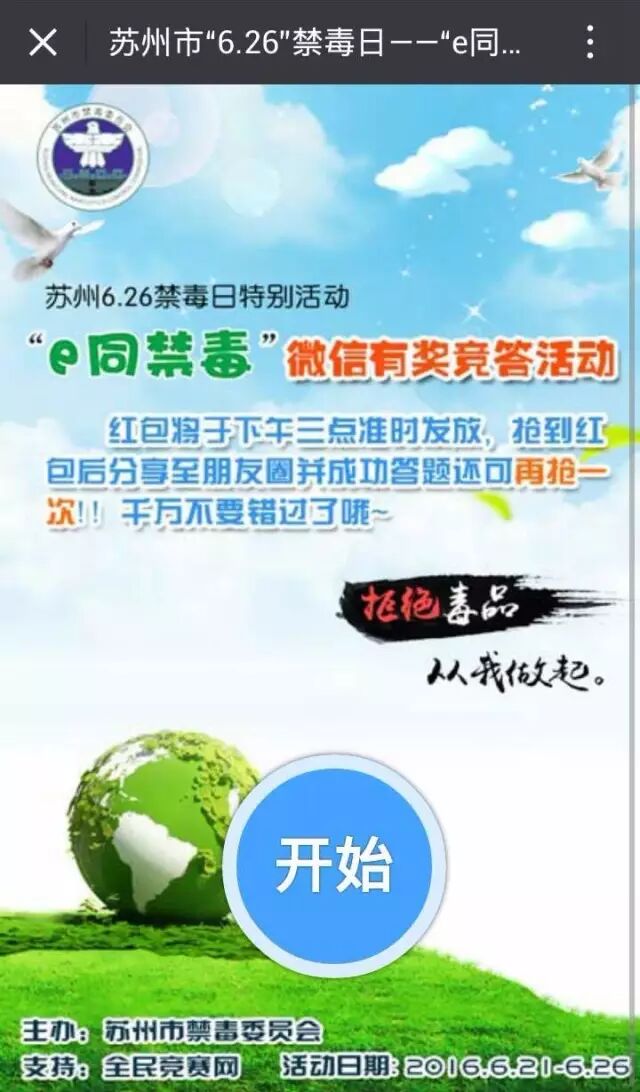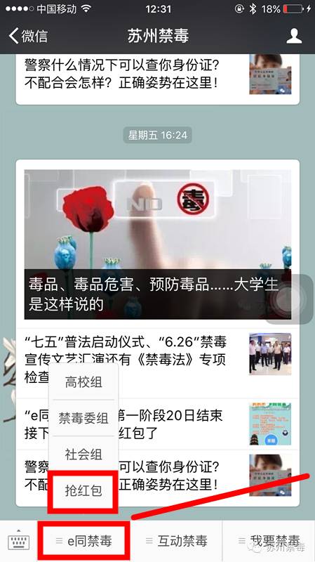 1、提前关注“苏州禁毒”,从菜单【e同禁毒】里面的【抢红包】进入才能参与答题抢红包喔!记得要从菜单进入哦!