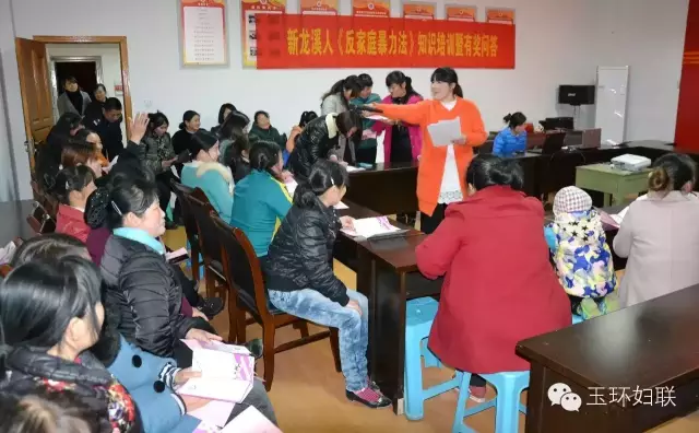 为了进一步宣传今年刚实施的《反家庭暴力法》,增强新玉环人的法制观念、维权意识,龙溪镇妇联在发放《反家庭暴力法》宣传学习资料、发出“反对家庭暴力,创建平安家庭”的倡议的同时,还采用有奖竞答互动游戏的形式,丰富新玉环人妇女姐妹们的法律知识。