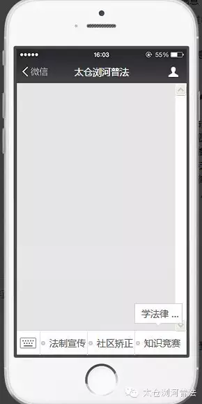 1、关注“太仓浏河普法”微信公众号,点击右下角“知识竞赛”按钮,再点击“学法律抢红包”按钮,进入活动界面。