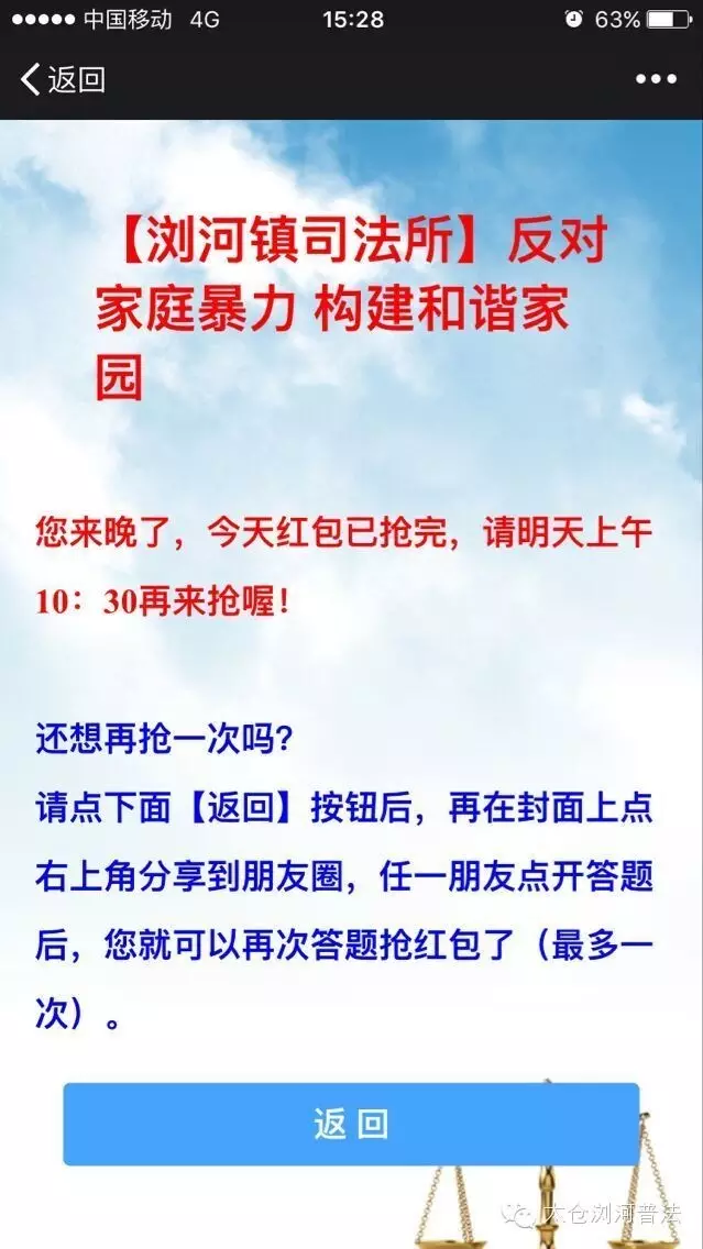 活动期间,每天上午10:30定时投放红包,直到红包抽完为止,系统会提示“您来晚了,今天红包已抢完,请明天上午10:30再来抢喔!”。