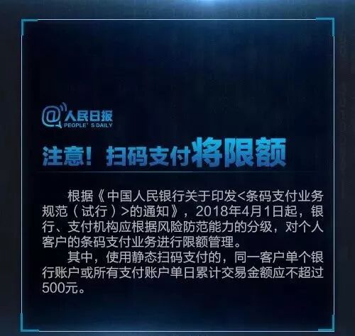 付款扫码、收款扫码……如今扫码支付已成为生活常态。根据央行通知,4月1日起,微信、支付宝等应用扫码付款将限额,静态扫码每天最高500元。