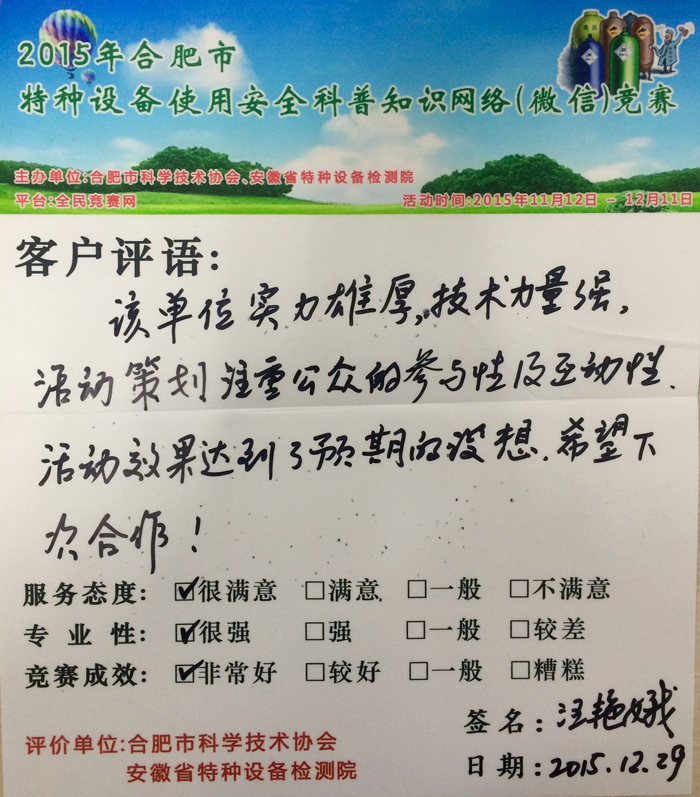 合肥市2015年特种设备使用安全科普知识网络、微信竞赛