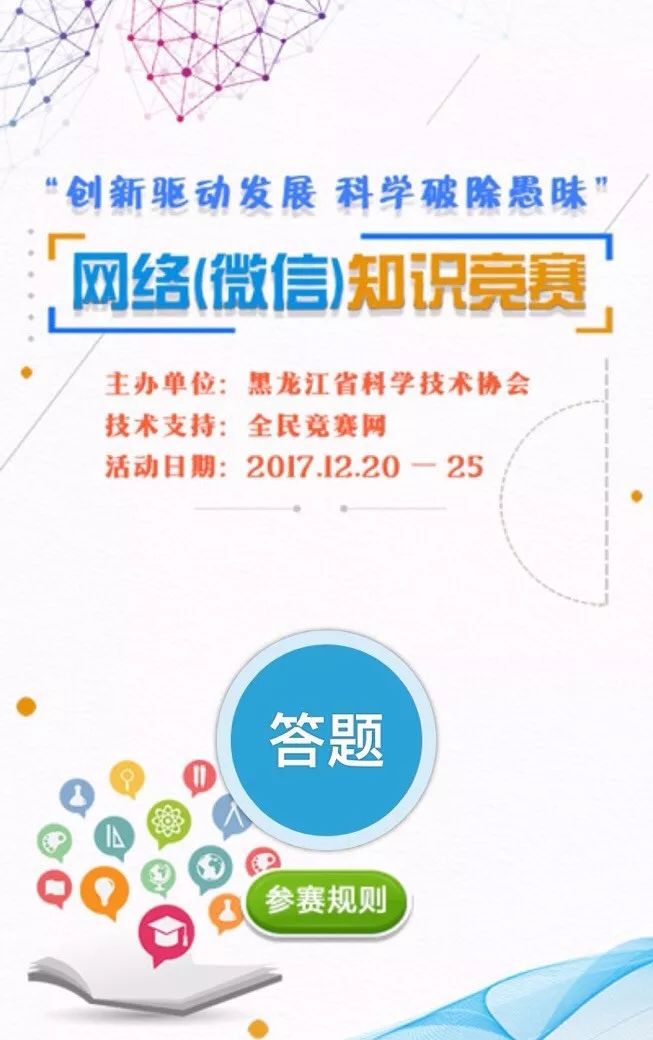 3、每位参赛者有2次答题机会(取最高分)。参赛者点击"开始答题"后,系统将自动随机生成试卷,每题限时60秒,60秒之内不作答则被视为放弃该题。答题完毕点击提交后,系统自动评分并进行排名。