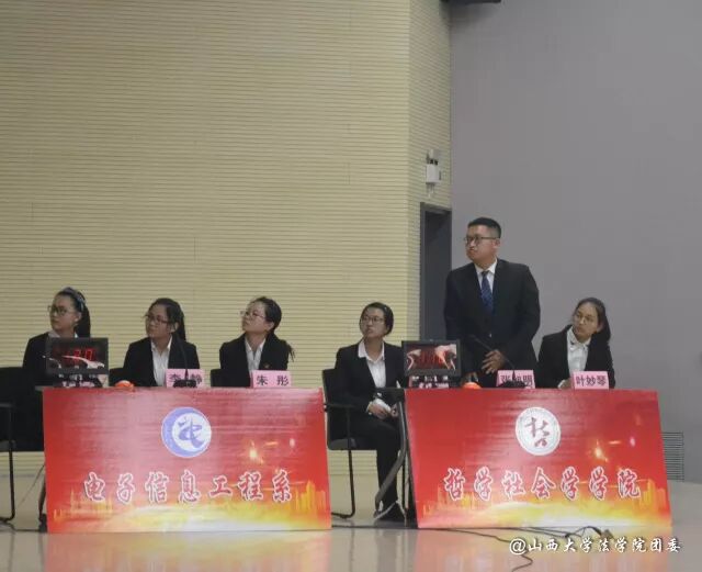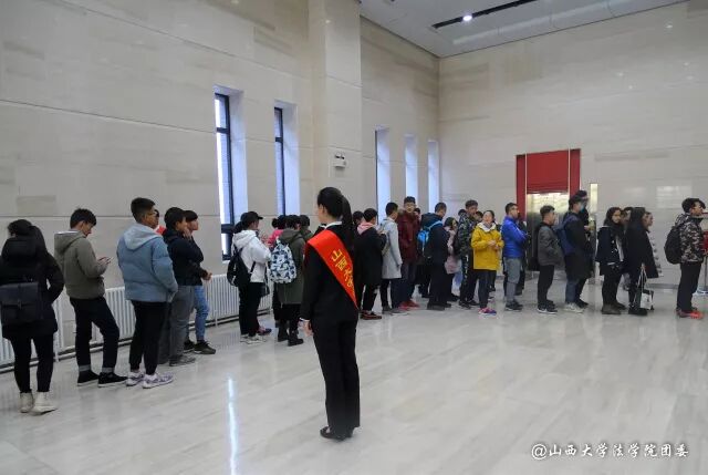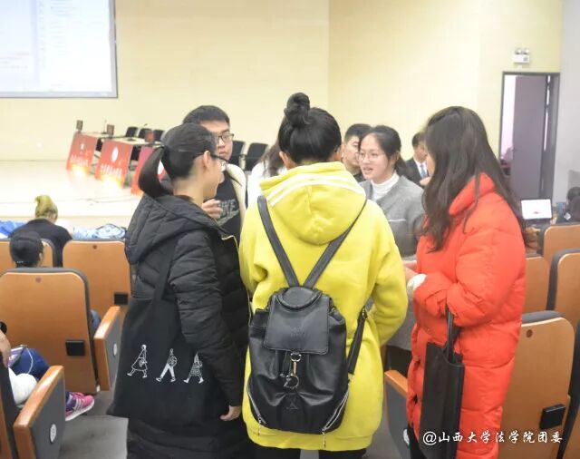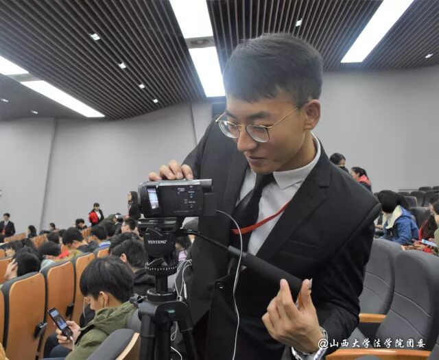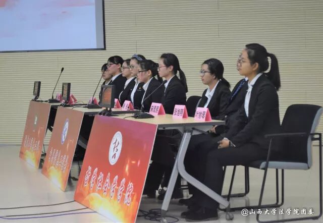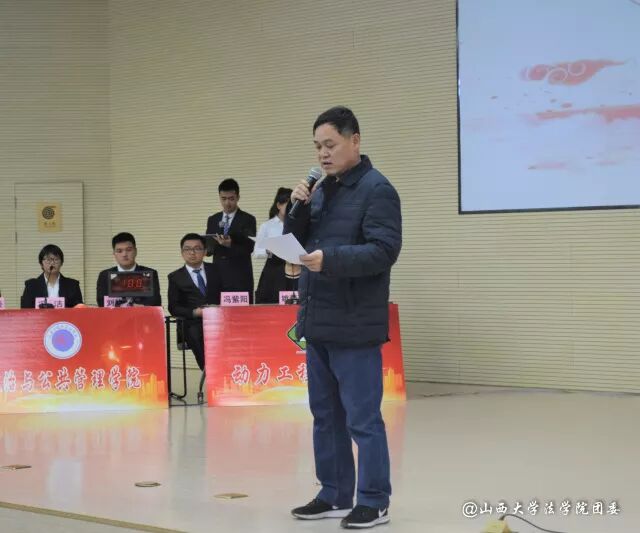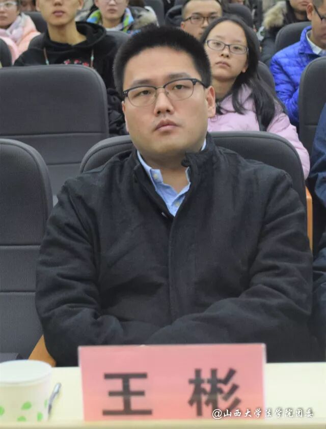 当天到场的嘉宾有:山西大学党委宣传部副部长范润宽、山西大学法学院党委副书记王鹏、山西大学法学院团委书记王彬、山西大学法学院讲师毋国平等。
