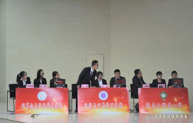各代表队一路冲杀,奋勇争先,经过初复赛的重重考验,最终只有六只队伍能够进入决赛,他们分别是动力工程系第一、第二代表队、政治与公共管理学院队、计算机与信息技术学院队、电子信息工程系队与哲学社会学学院队。他们神情紧张而期待,随着主持人宣布落座,大屏幕上开始相继放映视频,展现各队队员的风采。