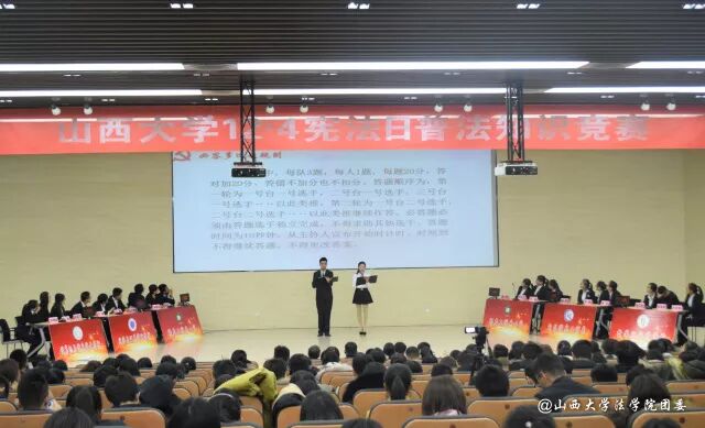 二零一七年十二月四日,由山西大学党委宣传部、山西大学法学院主办,山西大学法学院团委承办的山西大学12·4国家宪法日普法宣传系列活动之普法知识竞赛决赛于山西大学博雅会议厅顺利闭幕。
