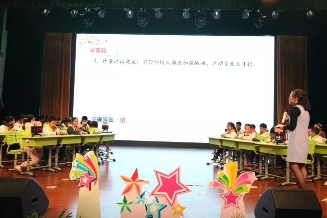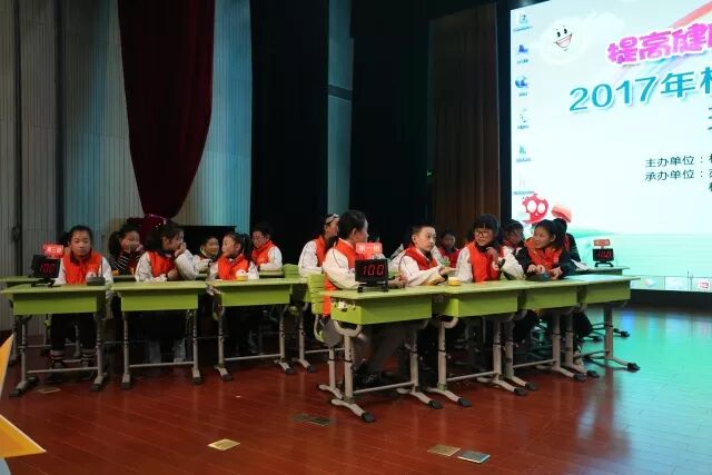 苏州市爱健办刘俊宾主任、苏州市疾控中心朱昆鹏副主任、苏州市疾控中心健教所潘耀东所长、苏州市广电总台健康工作室程晖主任、相城区卫计局陆惠琴副局长、相城区疾控中心周晓华主任、相城区卫计局爱健科王文康科长、相城区教育局缪芙蓉副局长、相城区教育局普教科王勇科长、相城区黄桥实验小学马海青校长等各级领导莅临竞赛现场,并与黄桥实小本部全体六年级学生一同观摩了小学高年级组的比赛。