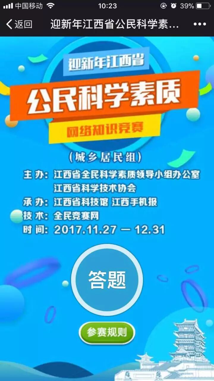 ②进入公众号,点击底部“科普活动”-“公民科学素质竞赛”。
