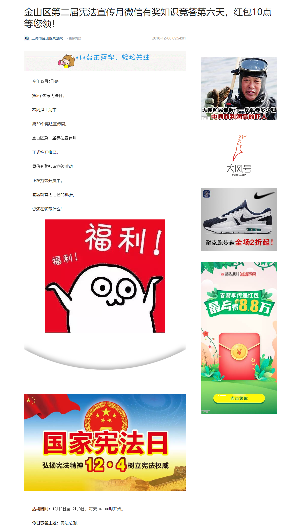 登录 查找 金山区第二届宪法宣传月微信有奖知识竞答第六天,红包10点等您领!