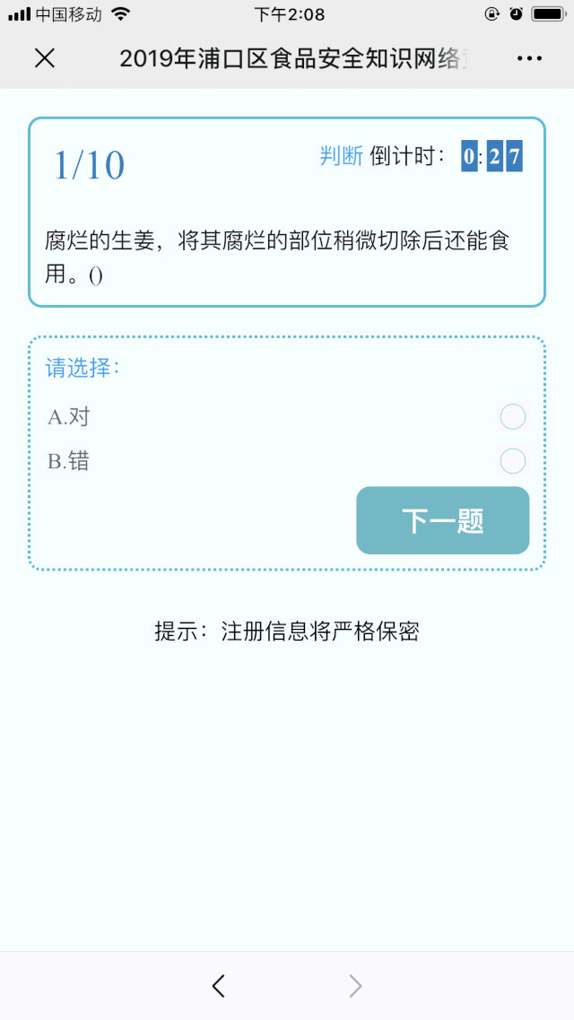 ▲系统将随机抽取题库中的10题进行问答,每题10分,每题限时30秒,共计100分。